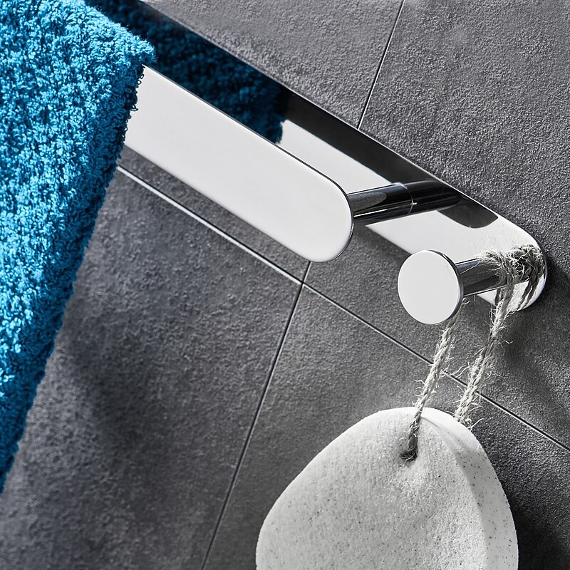Multifunctional Towel Bar with Hook Stainless Steel Electroplated and Polished Finished Bathroom Shelf Self-adhesive Silvery 1pc 6