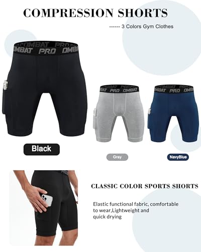 5 Pack Compression Shorts Men with Pocket Spandex Athletic Baselayer Shorts Quick Dry Compression Sports Underwear 3