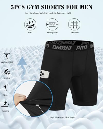 5 Pack Compression Shorts Men with Pocket Spandex Athletic Baselayer Shorts Quick Dry Compression Sports Underwear 5