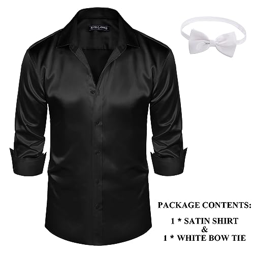 PJ PAUL JONES Men's Shiny Satin Dress Shirts Long Sleeve Button Down Silk Shirt with Bow Tie 1