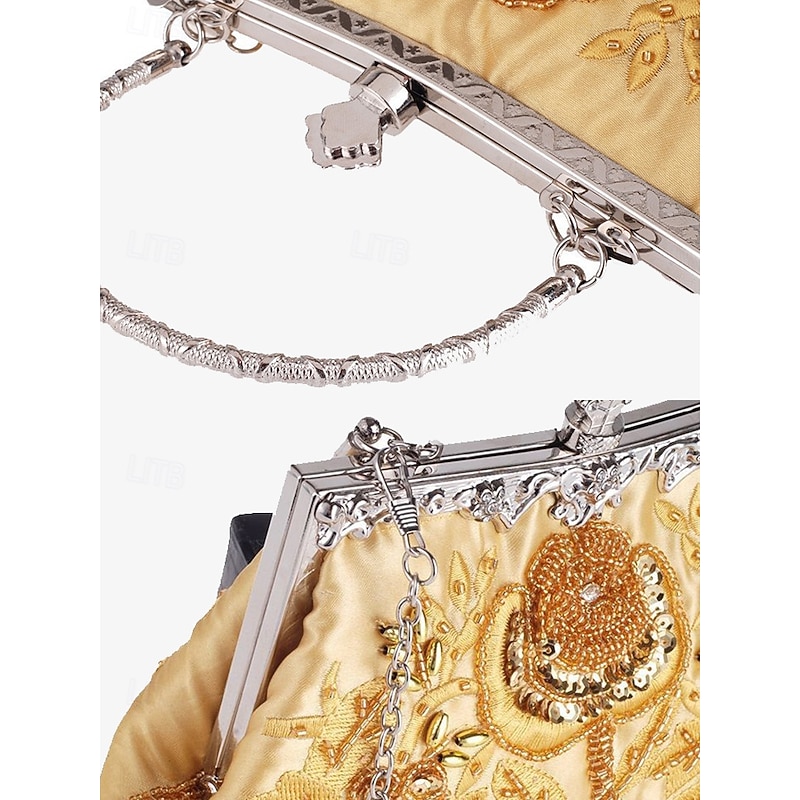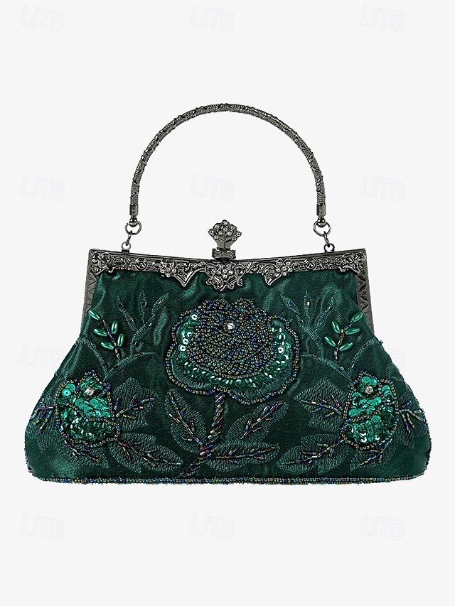 More information about Women's Clutch Evening Bag Wristlet Shoulder Bags Polyester Party Wedding Party Beading Embroidery Chain Large Capacity Multi Carry Solid Color Flower Green