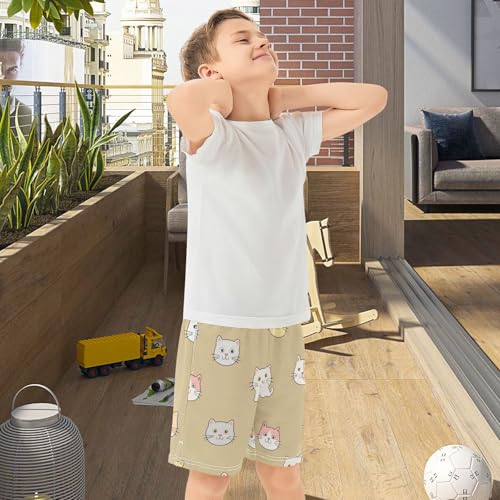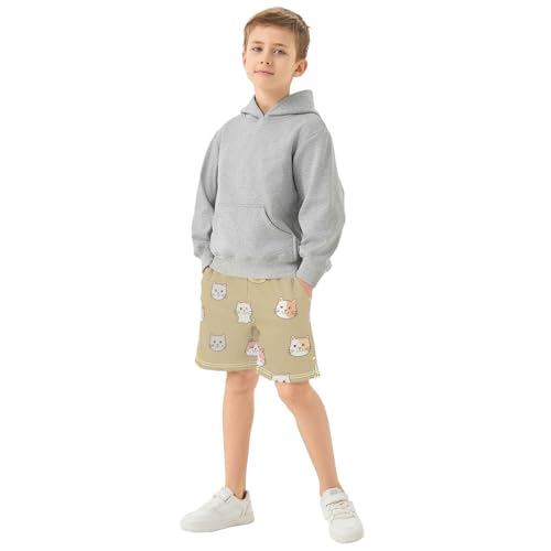 Cartoon Cats Athletic Shorts with Zipper Pockets, Youth Boys Athletic Running Shorts for Summer 2