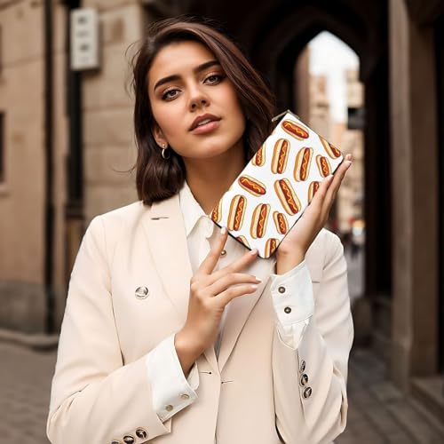 Leather Thin Slim Wallets for Women & Men - Classic Hot Dog Print Card Wallet Holder with Zipper 4