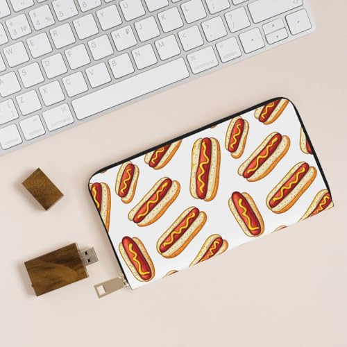 Leather Thin Slim Wallets for Women & Men - Classic Hot Dog Print Card Wallet Holder with Zipper 1