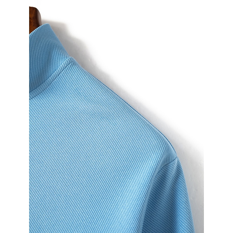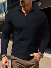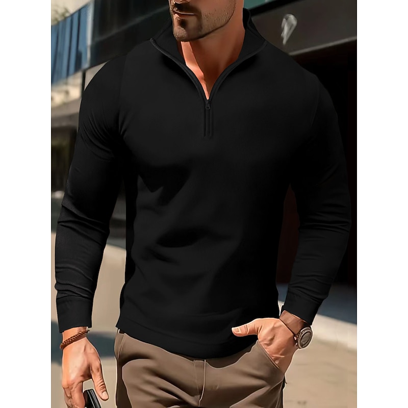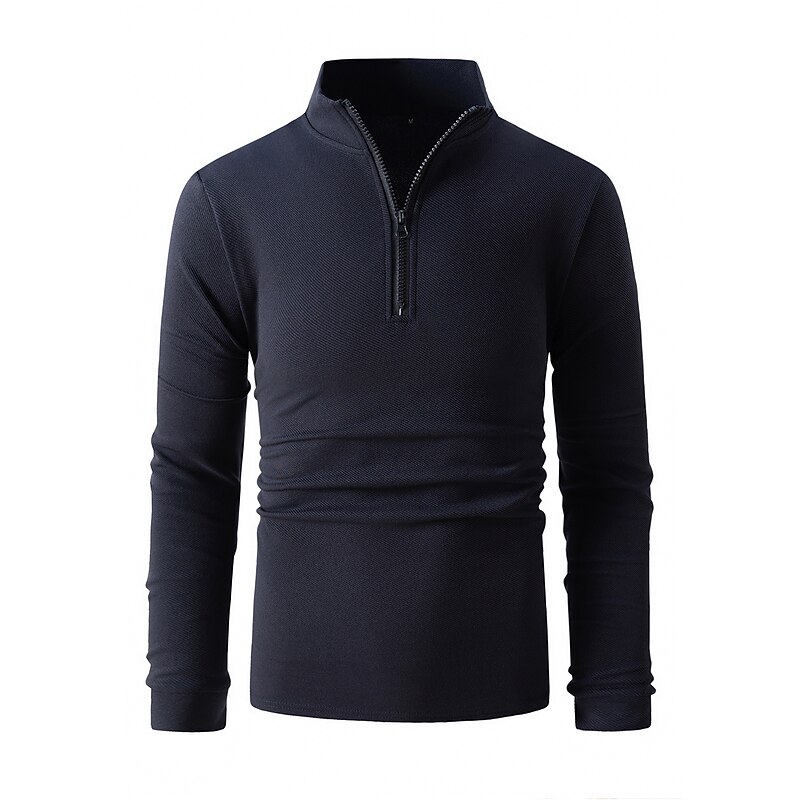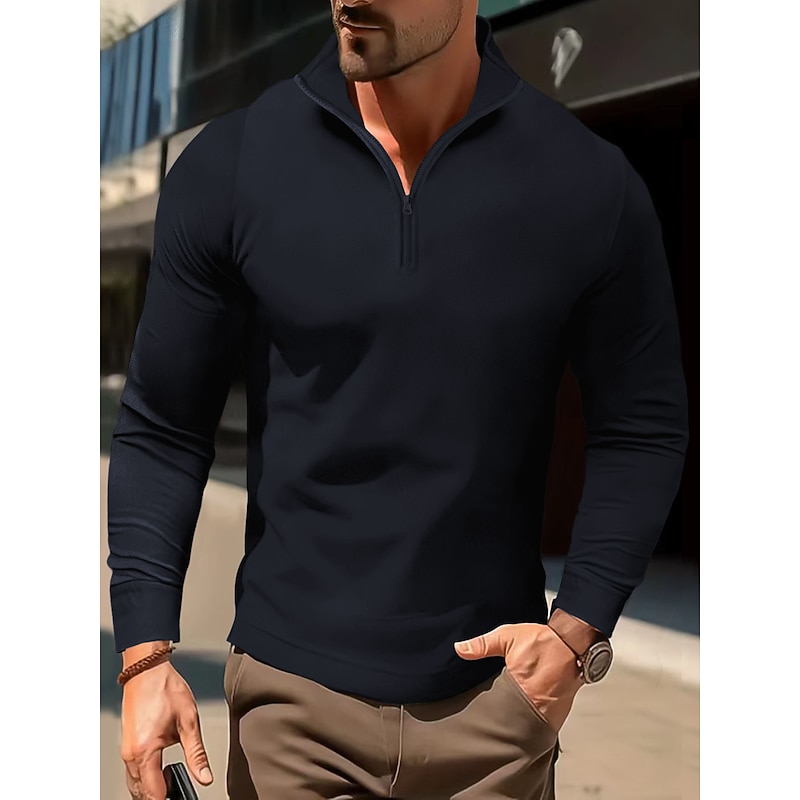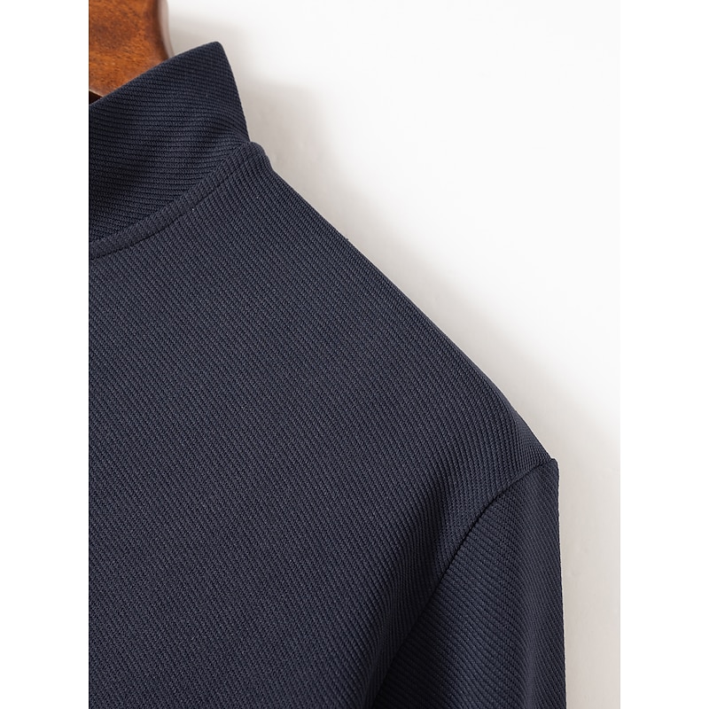 More information about Men's Polo Shirt High Neck Outdoor Casual Lapel Quarter Zip Long Sleeve Fashion Basic Waves Solid / Plain Color Quarter Zip Spring & Fall Regular Fit Black White Dark Navy Blue Polo Shirt