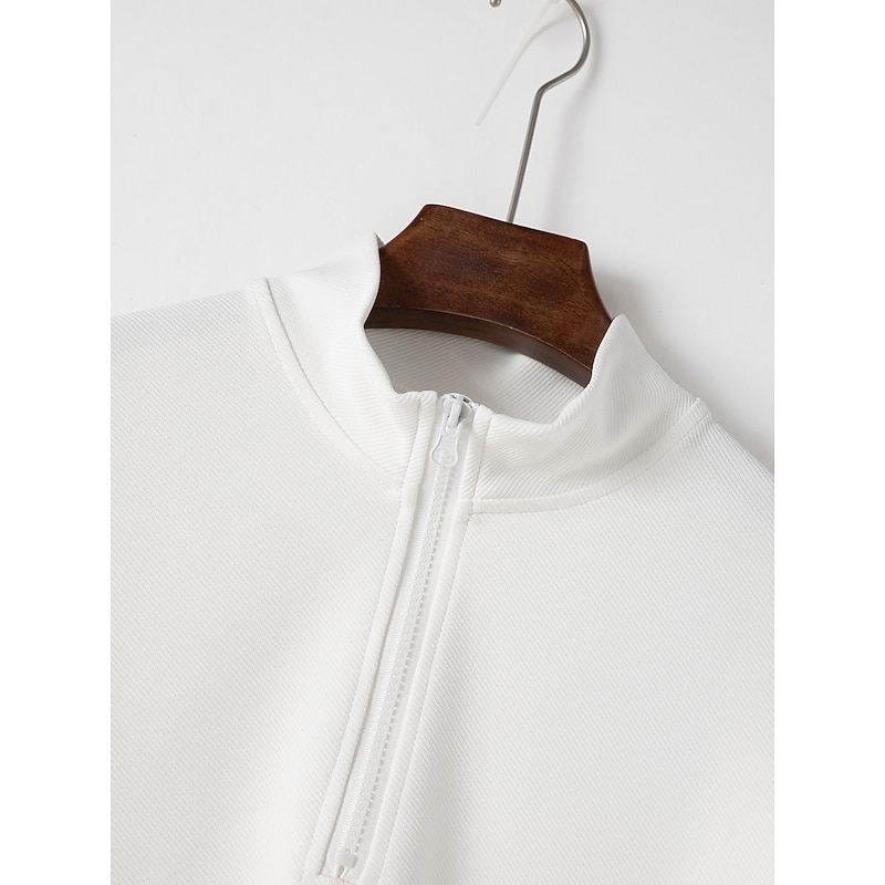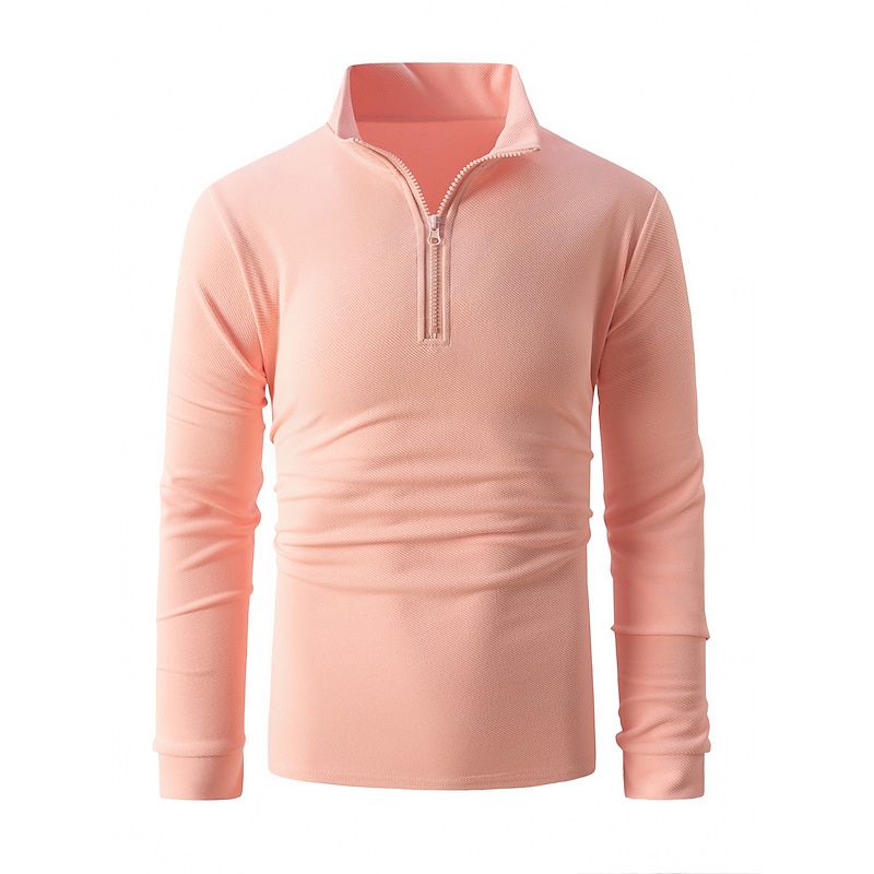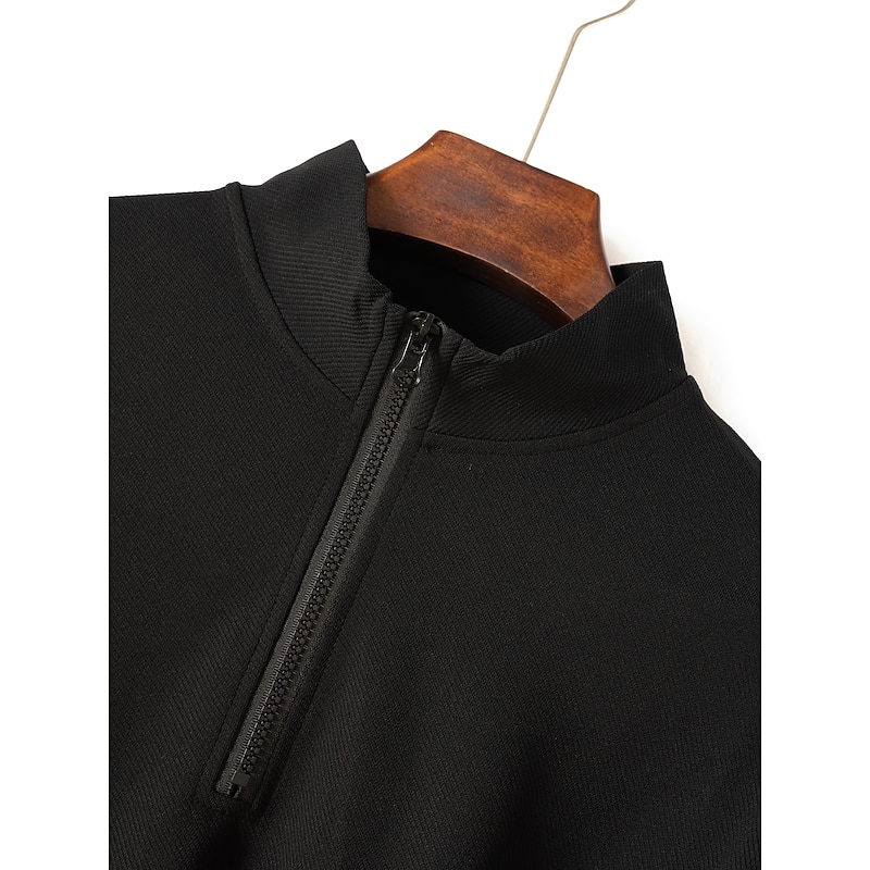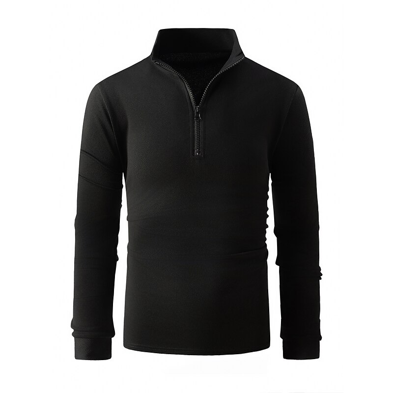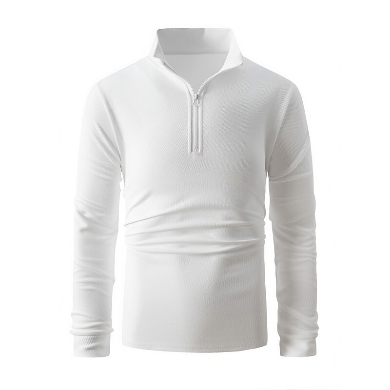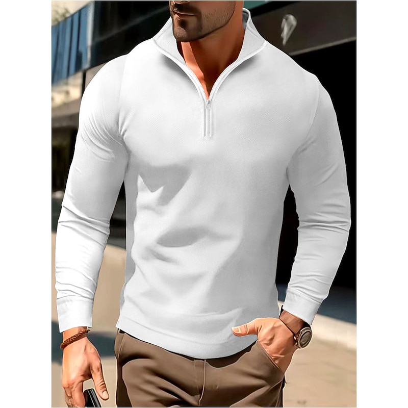 More information about Men's Polo Shirt High Neck Outdoor Casual Lapel Quarter Zip Long Sleeve Fashion Basic Waves Solid / Plain Color Quarter Zip Spring & Fall Regular Fit Black White Dark Navy Blue Polo Shirt
