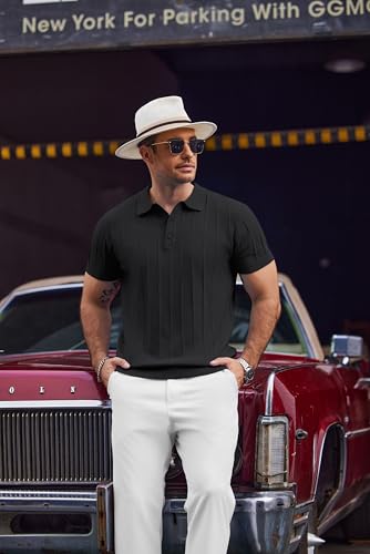 HOT ! COOFANDY Mens Knit Polo Shirts Short Sleeve Ribbed Textured Polo Shirt Lightweight Casual Golf Shirts Collared T Shirt