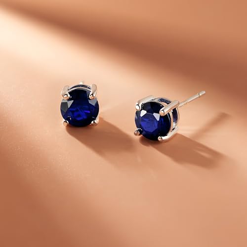 • STYLE: These classic stud earrings feature 6mm round lab created blue sapphire stones
