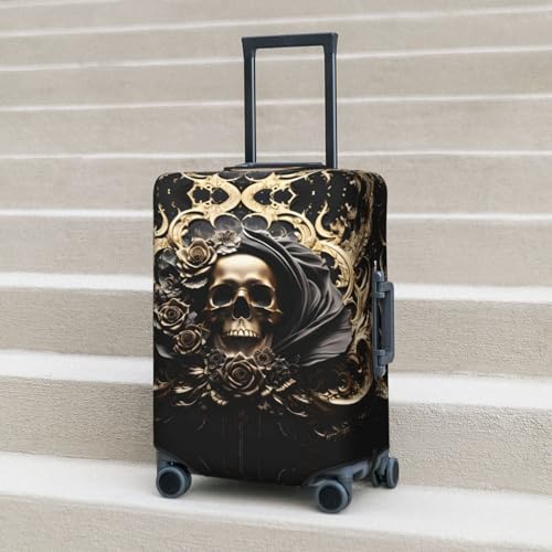 Gold Rose Skull Travel Luggage Covers - Elasticity Suitcase Covers Protector for Luggage 18-32 Inch 3
