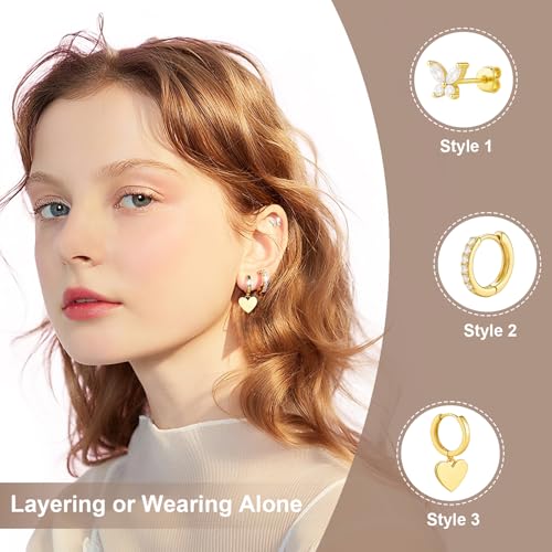 Hoop Earrings for Women Dainty Gold Earrings, 14K Plated Hypoallergenic Stud Earrings Set Cartilage Earrings for Multiple Piercing for Women 6