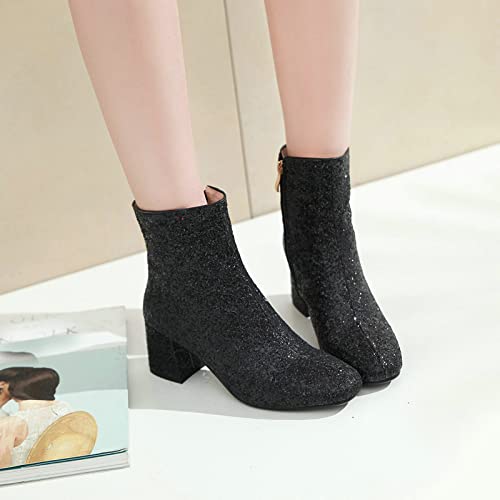 FIFSY Women Sparkly Ankle Boots Sequin Glitter Booties Chunky High Heels 6