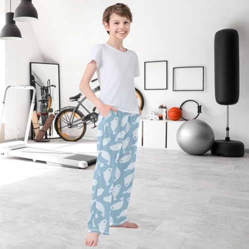 Boy's Pj Pants Cute White Fur Seals Swimming Lounge Bottoms Elastic Waist Kids Joggers with Pockets Size 6-14 7