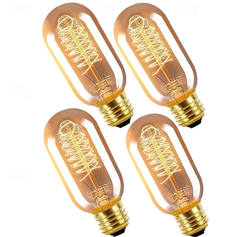 40W Edison Vintage Incandescent Light Bulb Dimmable T45 Antique Spiral Filament E26 E27 Amber Warm White for Home Lighting Fixture 220-240V 4/6/10pcs 4