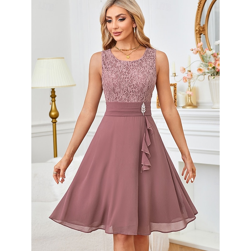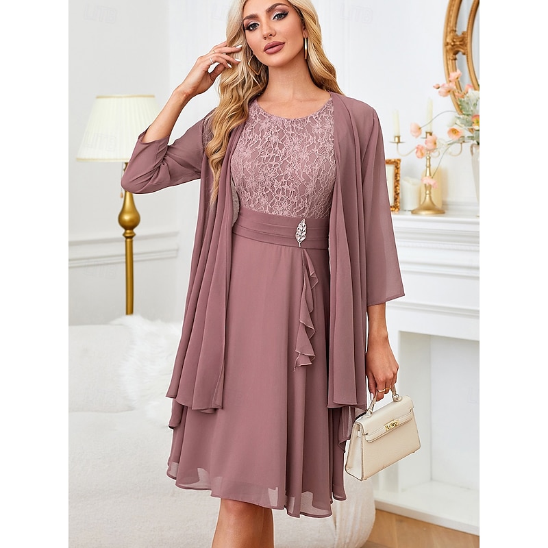 More information about Women's Knee Length Dress Dress Set Wedding Guest Dress White Lace Dress with Sleeves Dress With Jacket Elegant Formal Wedding Guest Cocktail Party Regular Fit Plain 3/4 Length Sleeve Round Neck Gray