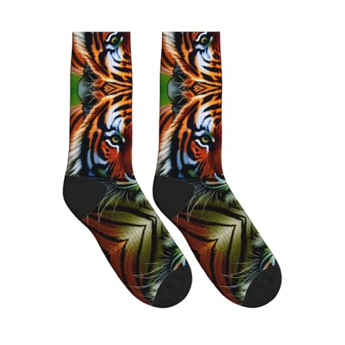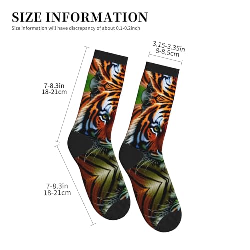 • Match For All Occassion: These Tiger Stripes Orange Pattern Calf Socks Will Provide Protection For Your Foot When You'Re Wearing Them At Home Or Outdoors. Perfect High Performance Crew Socks For Athletic, Jogging,Power Walking, Playing Football, Gym Exercising And Golfing.