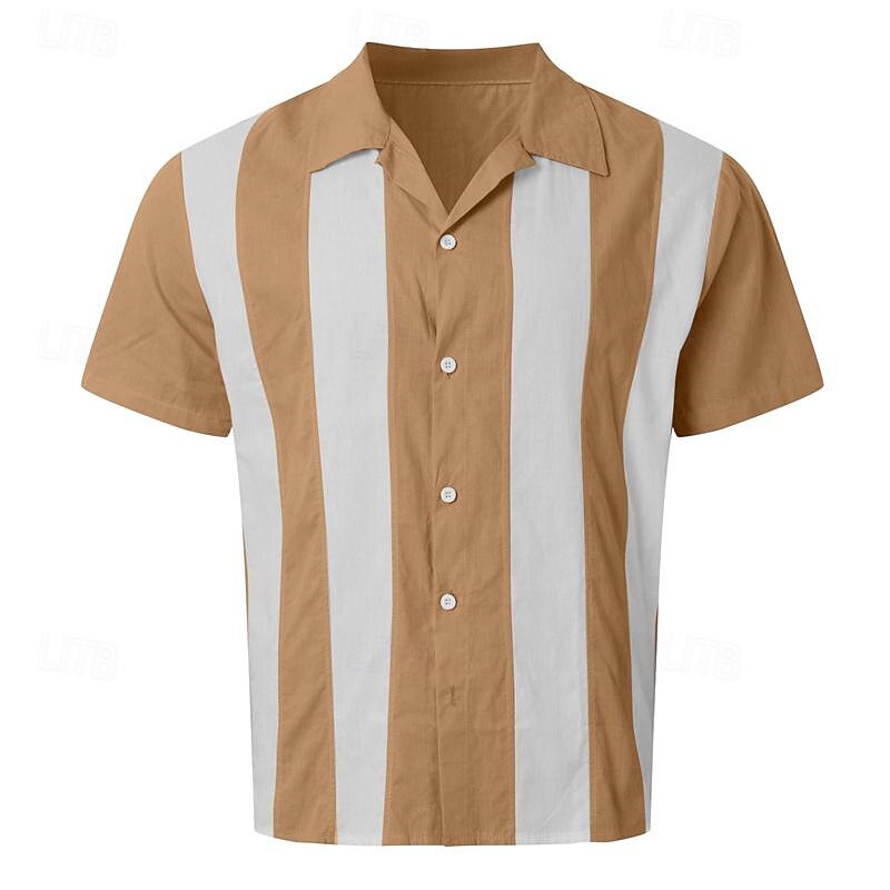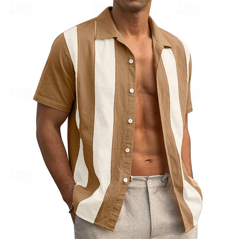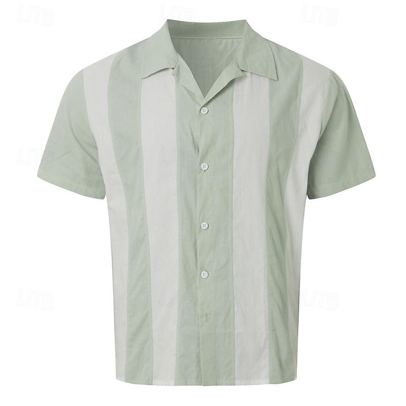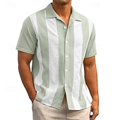 More information about Men's Shirt Summer Shirt Casual Shirt Beach Shirt Button Up Shirt Striped Shirts Black Green khaki Short Sleeve Stripes Camp Collar Vacation Hawaiian Clothing Apparel Fashion Casual Comfortable