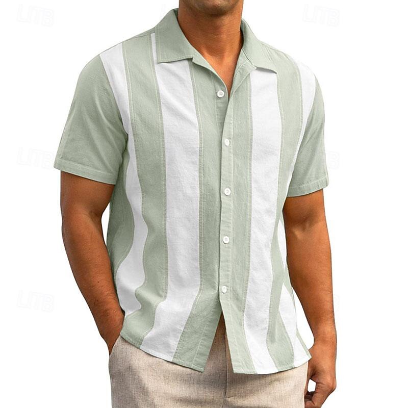 Men's Shirt Summer Shirt Casual Shirt Beach Shirt Button Up Shirt Striped Shirts Black Green khaki Short Sleeve Stripes Camp Collar Vacation Hawaiian Clothing Apparel Fashion Casual Comfortable