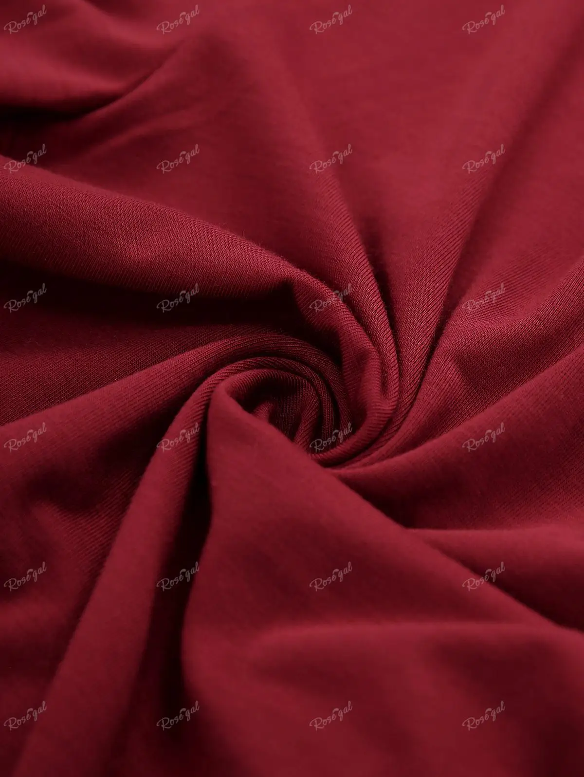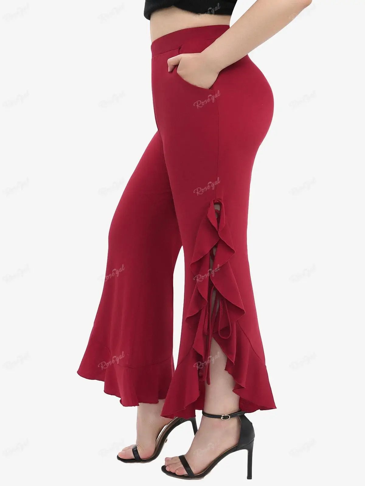 Plus Size Side Lace Up Braided Pocket Pants Red Women's Casual Quality Boot Cut Pant. L-5X