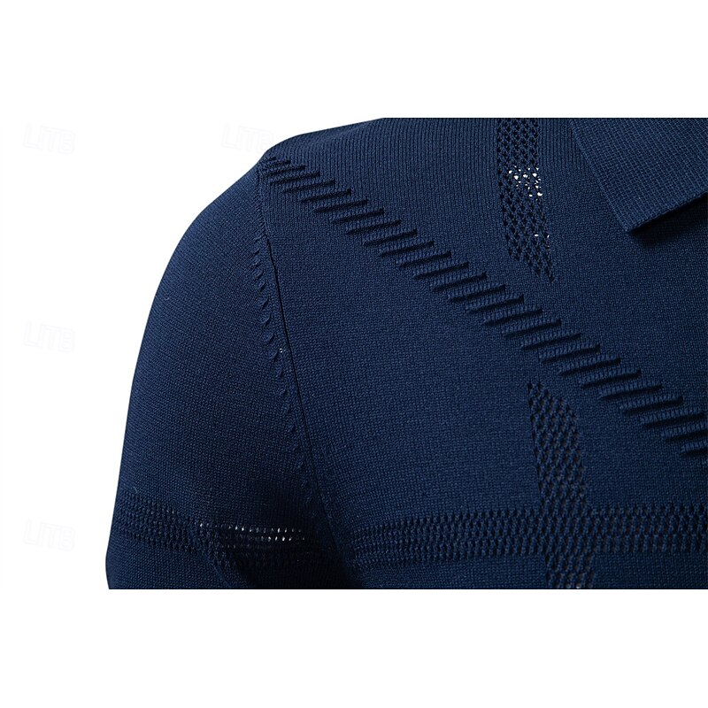 More information about Men's Pullover Sweater Jumper Knit Regular Tops Jacquard Buttons Solid Color Polo Collar Elegant Vintage School Home Clothing Apparel Spring Fall Dark Navy Khaki S M L