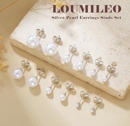 HOT ! LOUMILEO 6 Pairs Pearl Earrings Set Hypoallergenic Small Sterling Silver Stud Earrings for Women Man 3-10MM Tiny Cartilage Piercing Pearl Studs for Multiple Piercing
