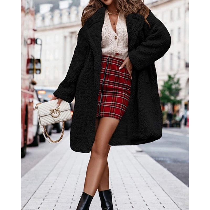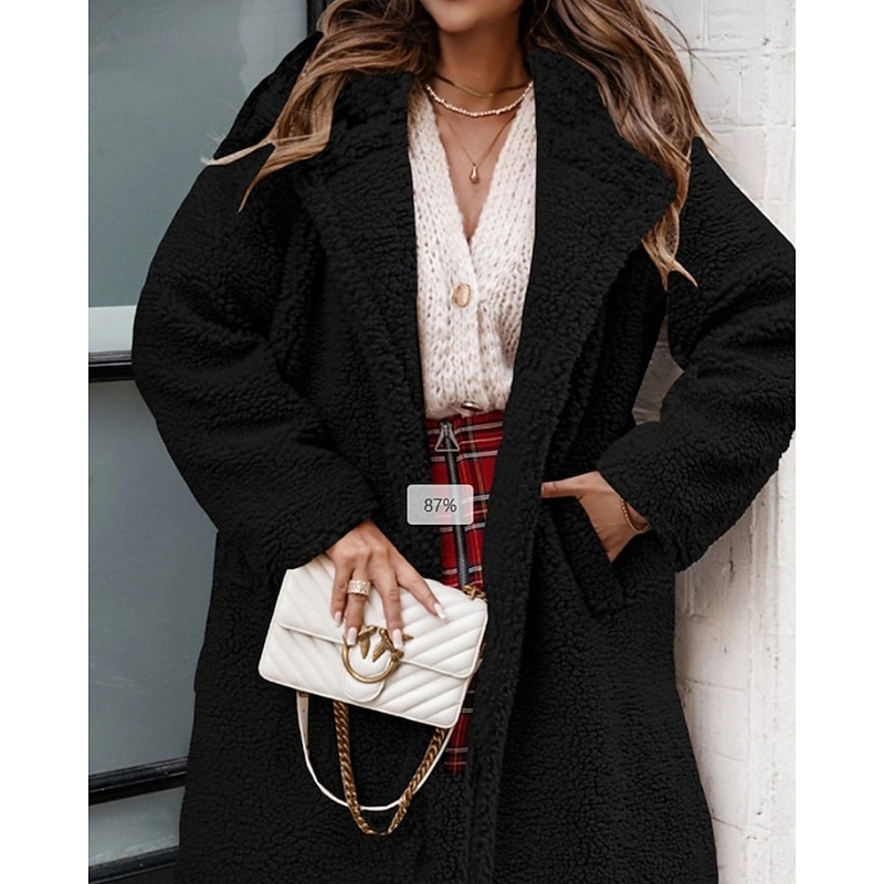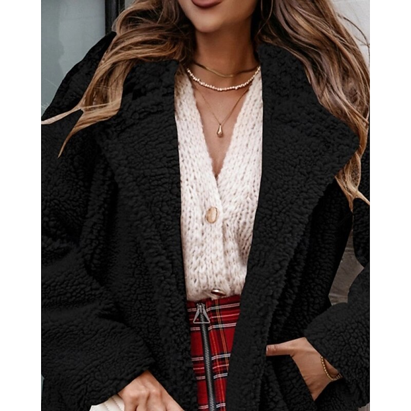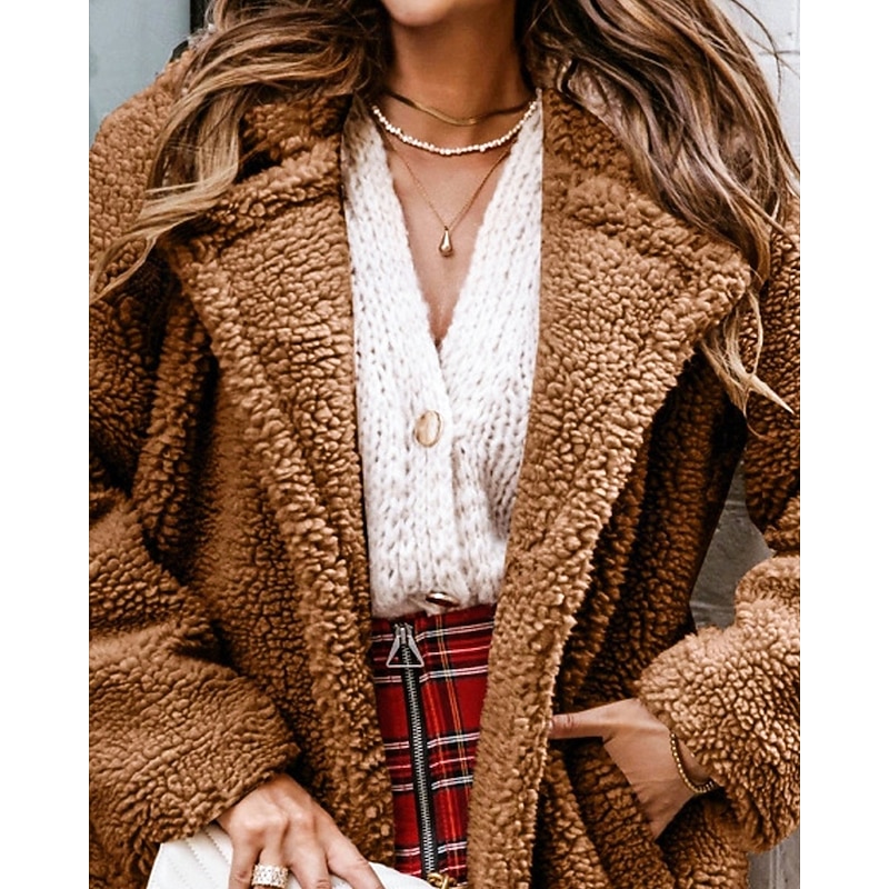 More information about Women's Winter Coat Teddy Coat Casual Jacket Warm Comfortable Pocket Fashion Plain Outdoor Daily Wear Going out Weekend Single Breasted Regular Turndown Regular Fit Long Sleeve Outerwear Black Brown