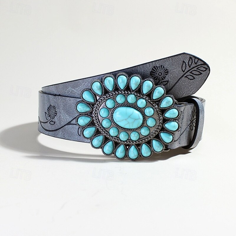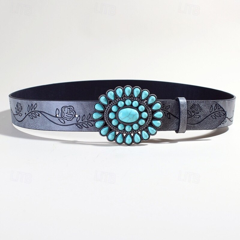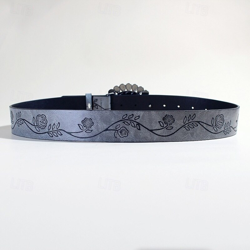 Women's Belt PU Brown Gray Waist Belt Outdoor Daily Floral 12