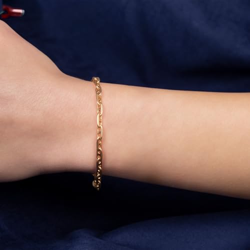 HOT ! 14K Gold Bracelets for Women Fine Gold Mariner Chain Bracelet for Women & Mens Bracelet Layering Womens Bracelets Jewelry Presents for Her Him (6.5'' 7'' 7.5'' 8'' 9'')