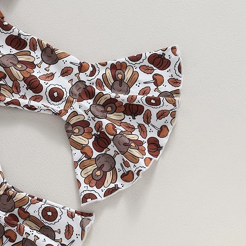 BemeyourBBs Toddler Baby Girl Thanksgiving Outfit Turkey Long Sleeve Sweatshirt Top with Bell Bottom Pants Set Fall Clothes 5