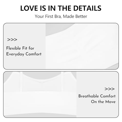 • Everyday Wear – Six pieces of girls training bras are included in this pack, giving your girl a range of options and colors to choose from throughout the week. A fashionable strappy top fits perfectly under both tanks and tees
