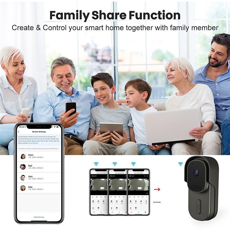 8. Family Share Function: Share the doorbell with your family members with limited access rights, creating a smart home together.