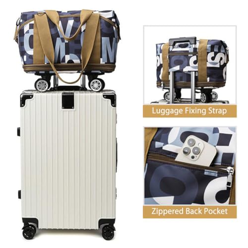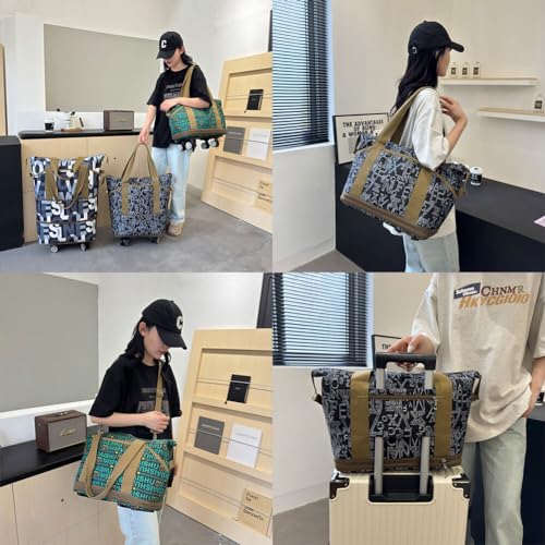 • ROLLING DUFFLE BAG WITH WHEELS - This foldable travel bag features a chic letter pattern design, equipped with 4 detachable wheels that can be easily pulled on rough and uneven surfaces, making it the ideal travel companion that combines style and function.