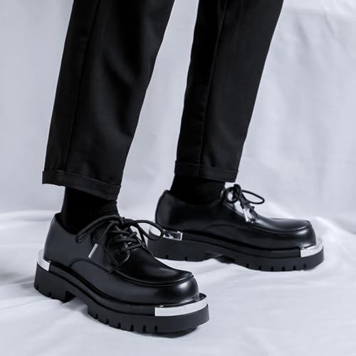 Mens Fashion Lace-Up Metal-Plate Leather Platform Oxfords Shoes Casual Round Toe Non-Slip Chunky Heels Derby Shoes for Business Casual Dress Prom Party 6