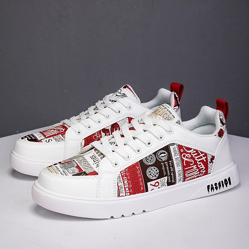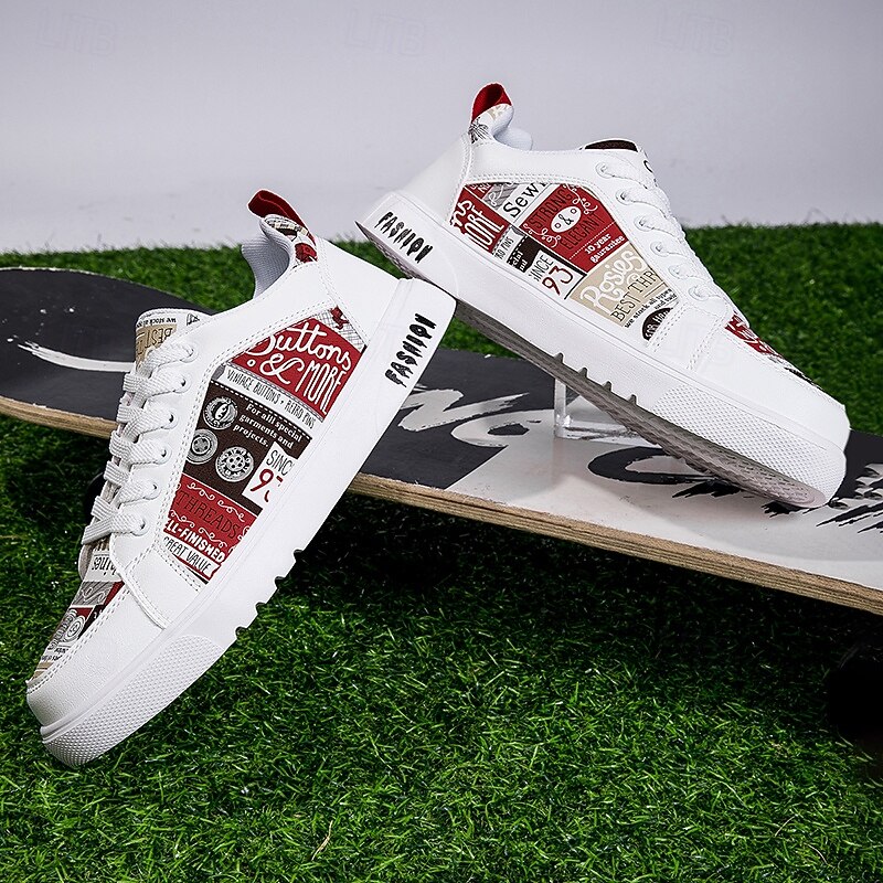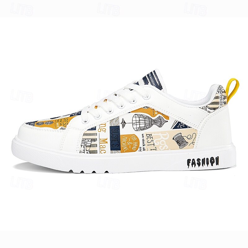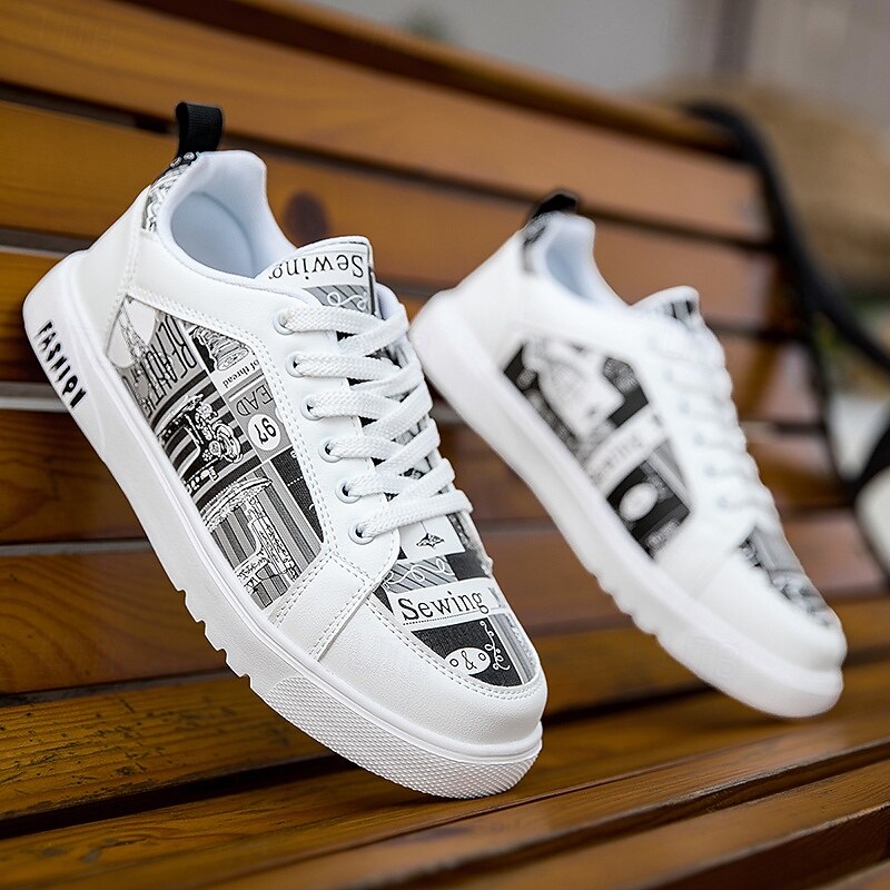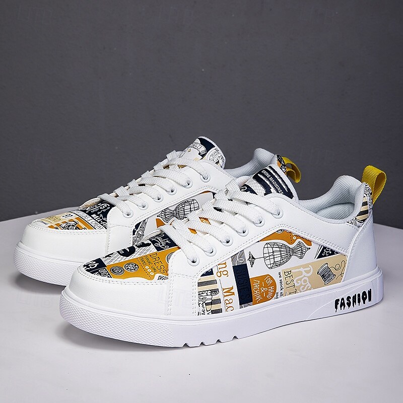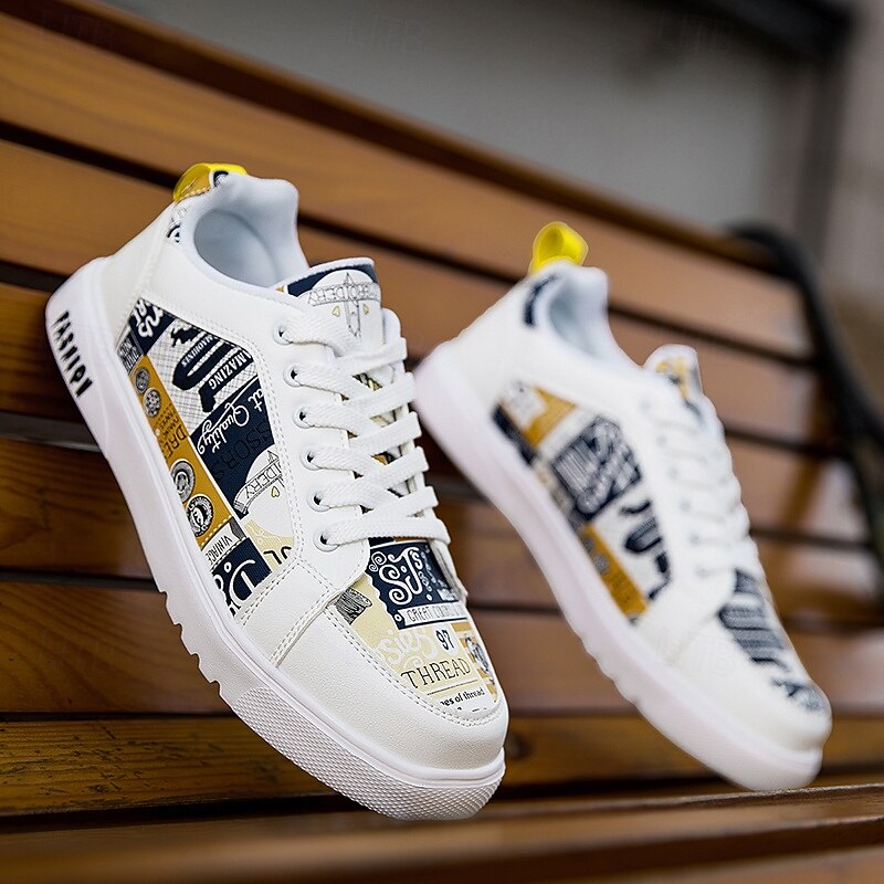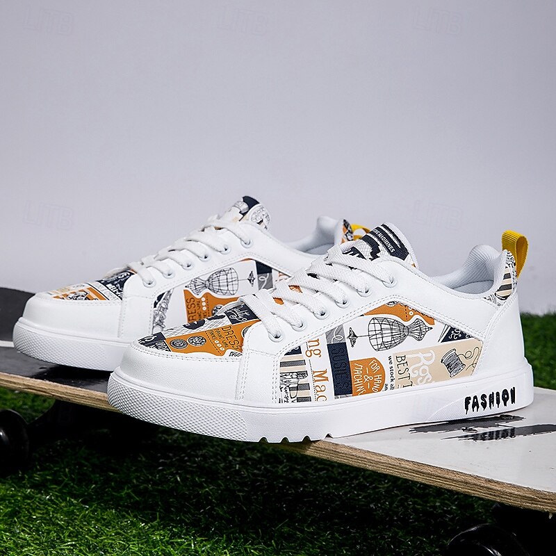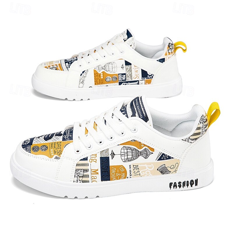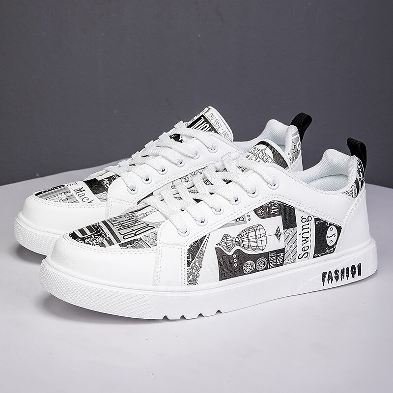 More information about Men's White Graphic Print Sneakers Trendy Casual Shoes for Street Style Parties and Daily Wear