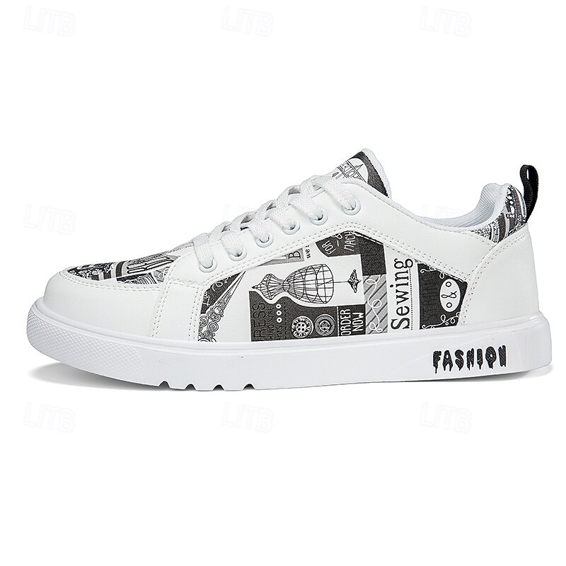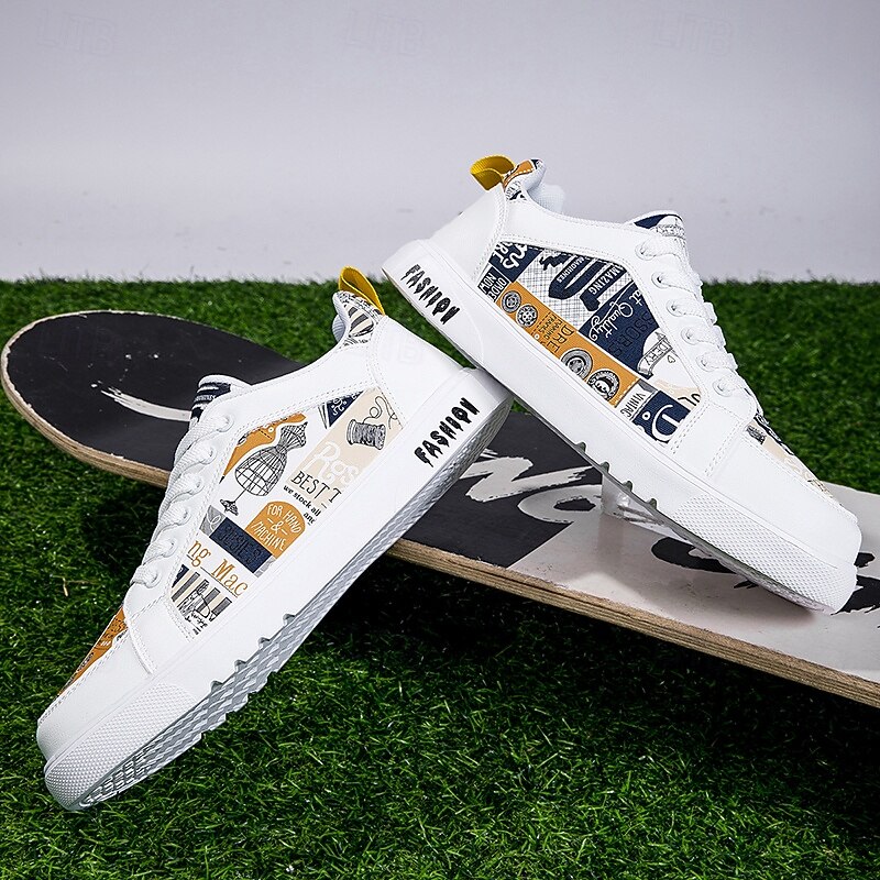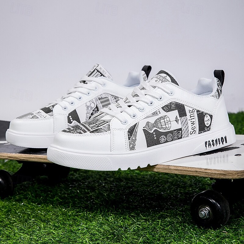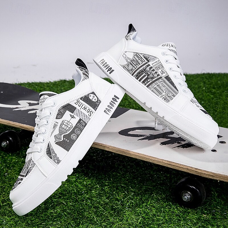 Men's White Graphic Print Sneakers Trendy Casual Shoes for Street Style Parties and Daily Wear 1