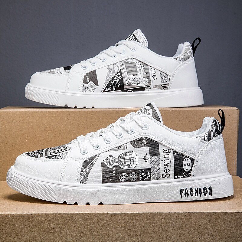 HOT ! Men's White Graphic Print Sneakers Trendy Casual Shoes for Street Style Parties and Daily Wear