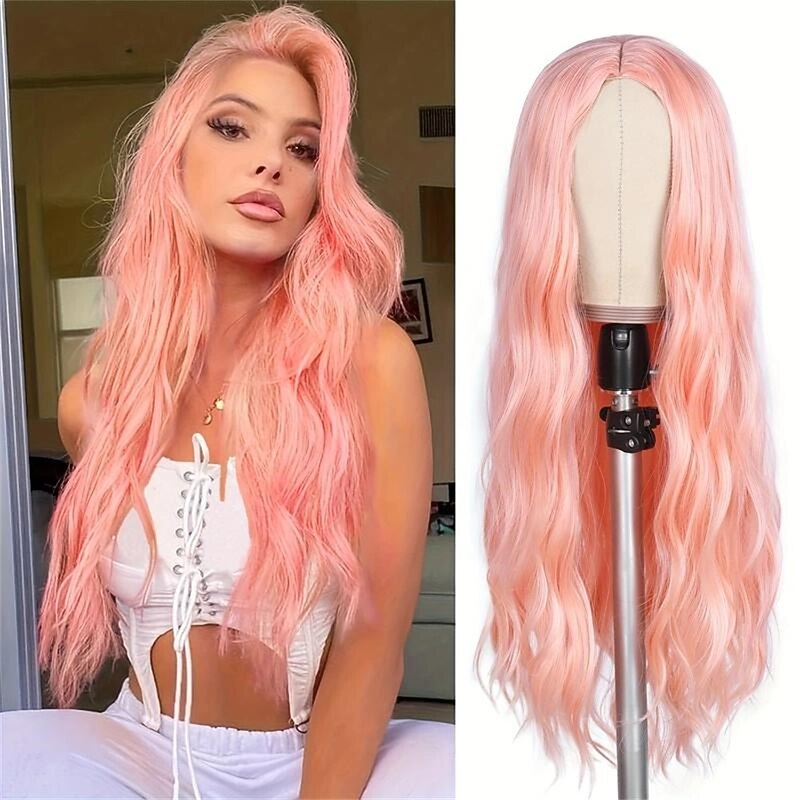 HOT ! Long Platinum Blonde Wig 28 Inch Natural Wavy Blonde Wig Middle Part Blonde Wig Synthetic Hair Blonde Wigs For Women