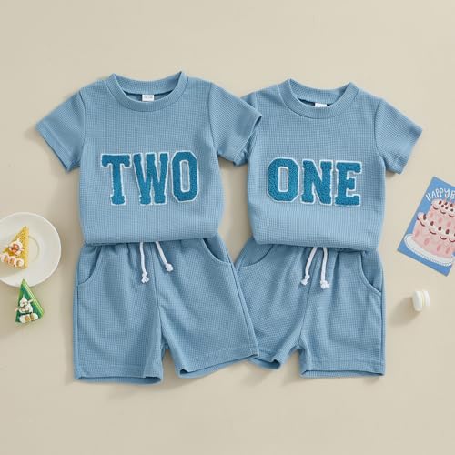 • What You Get - 1x Summer short sleeve birthday t-shirt top + 1x casual shorts. Waffle knit summer first 2nd birthday outfit for baby boys 1 or 2 years old.