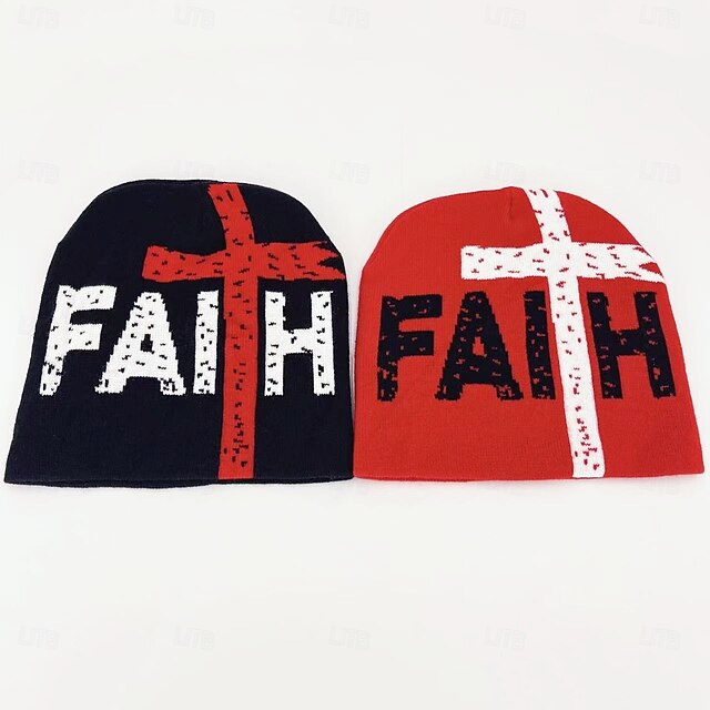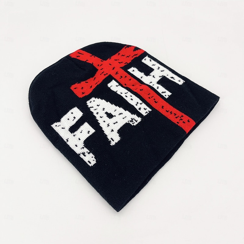 More information about Men's Unisex Beanie Hat Winter Hats Beanies Skull Cap Knit Hat Black Red Acrylic Fibers Jacquard Knitted Cozy Halloween Daily Wear Festival Cross Faith Warm
