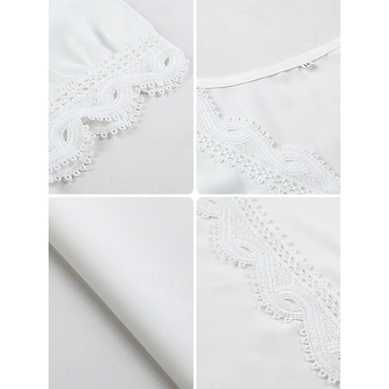 Women's Blouse Solid Color Stylish Basic Casual Short Sleeve Shirt Collar Regular Tops Daily Patchwork Buttons Lace Trim White Summer 5