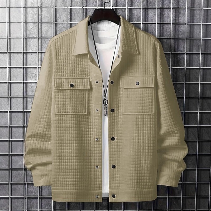 More information about Men's Shirt Jacket Overshirts Transition Jacket Daily Lightweight Pocket Spring Plain Streetwear Lapel Regular White Khaki Jacket