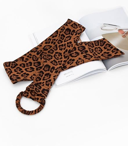 Leopard Wide Waist Belt Self Tied Wrap Around Obi Boho Dress Belt Sash Waistband with Buckle 6