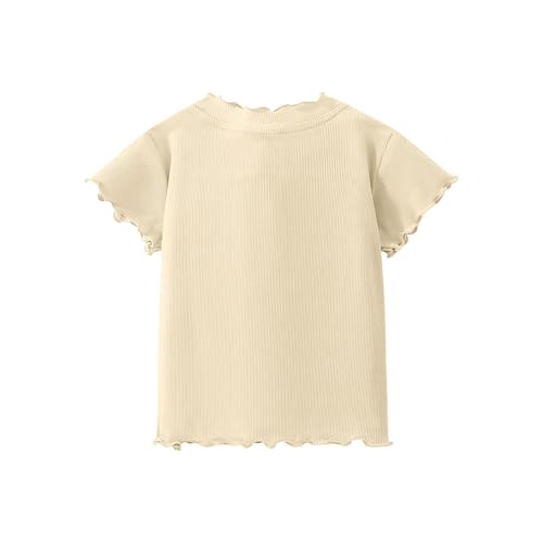HOT ! Girl's Ribbed T-Shirt Cute Ruffle Trim Kids Summer Short Sleeve Tops Crewneck Tees for 1-9 Years