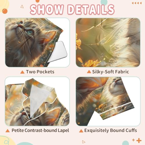 ALAZA Beautiful Butterfly Cat Kitten Flower Satin Pajamas Set Short Sleeve Button Down Sleepwear Summer Pjs 2 Piece 6