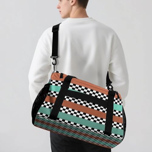Checkered Stripes Personal Item Bag Travel Duffel Bag Sports Tote Gym Bag Luggage Duffle for Women Men 6