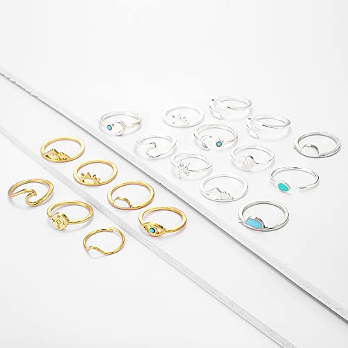 • Stacking rings:You will get down stacking ring set,these rings contain various fashion elements;butterfly, arrow, star, moon, evil eye, sea wave and so on