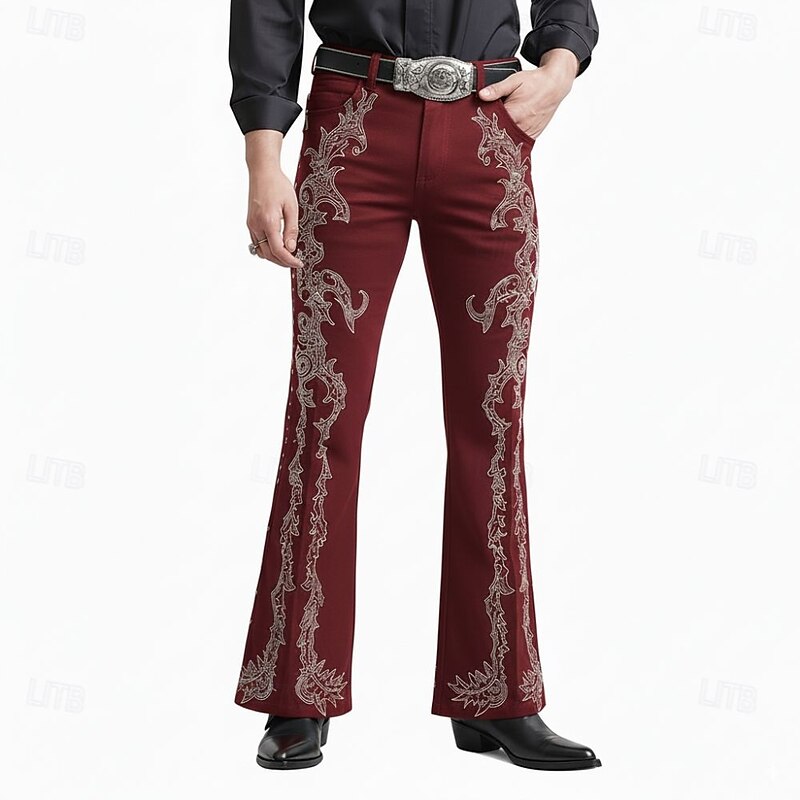 More information about Men's Floral Print Flowers Disco Pants 60s 70s Bell Bottoms Mid Waist Western Vintage Retro Outdoor Vacation Casual Side Pockets Flared Leg Pants Trousers Spring Fall 3D Print Black Red Blue