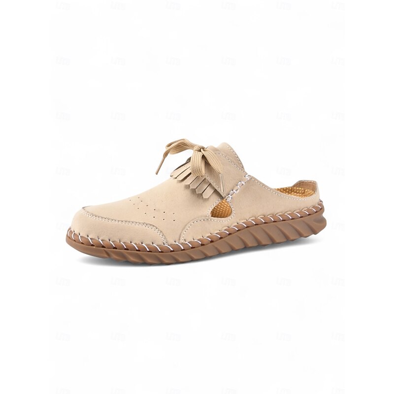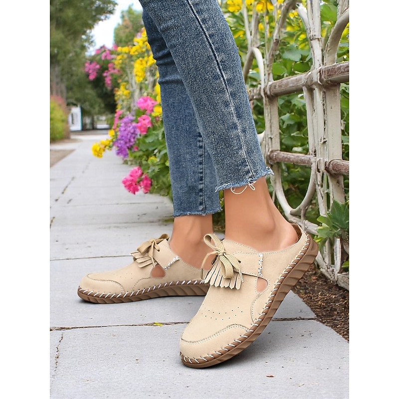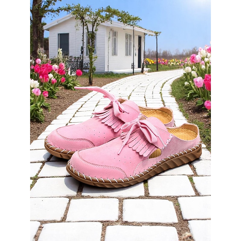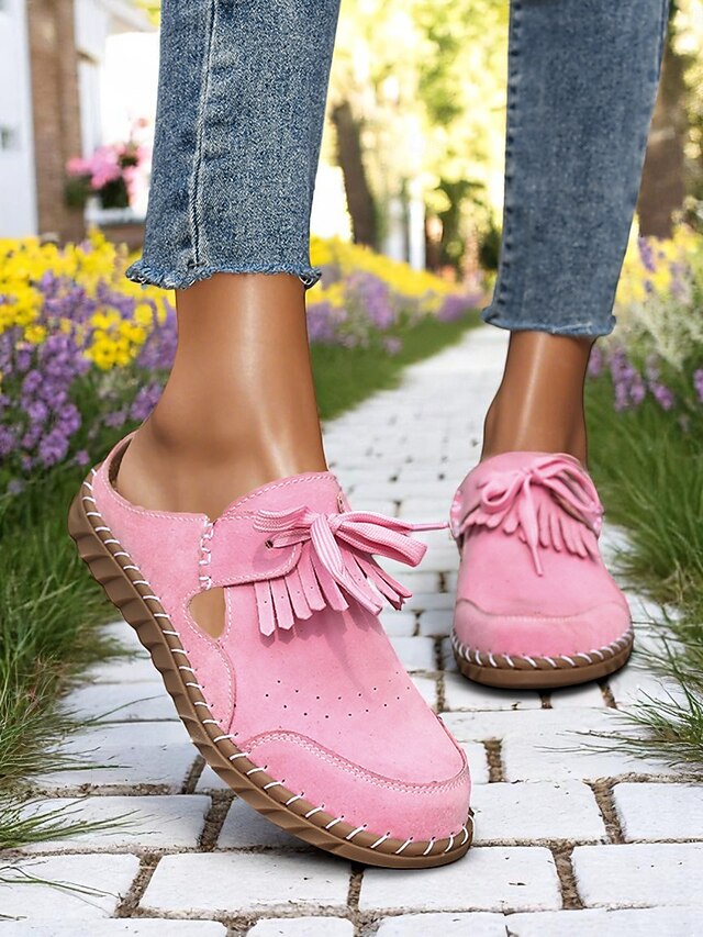 Women's Soft Sole Moccasin Mules– Pink Loafers with Fringed Detail, Lightweight Slip-On Design with Cutouts, Perfect for Garden Strolls and Casual Outings 17