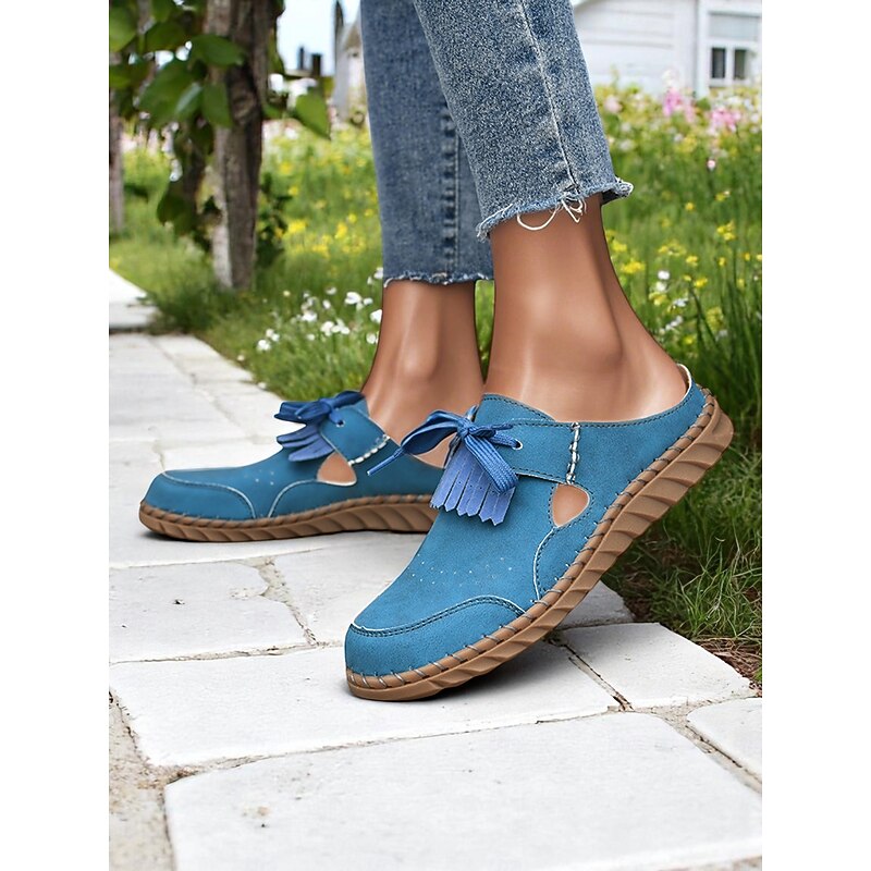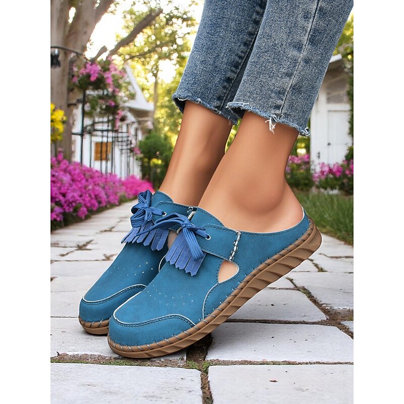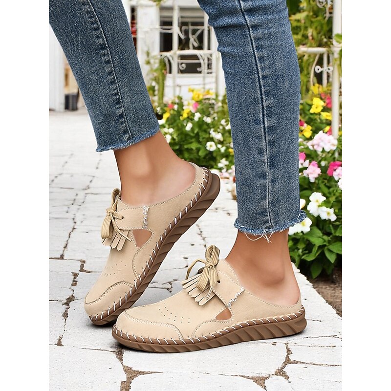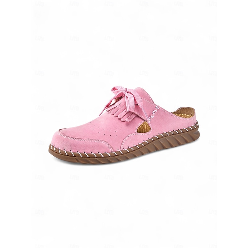 HOT ! Women's Soft Sole Moccasin Mules– Pink Loafers with Fringed Detail, Lightweight Slip-On Design with Cutouts, Perfect for Garden Strolls and Casual Outings