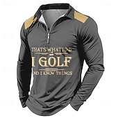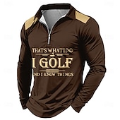 More information about Men's Letter Zip Polo Shirts Golf Shirt Long Sleeve Polo Shirts Collared Shirts Casual Outdoor Street Dailywear 3D Print Quarter Zip Polo Spring Fall & Winter Black Brown Dark Blue