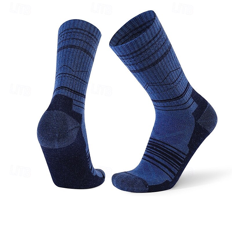 1 Pair Men's merino wool socks Hiking Socks Running Socks Sports Socks Thermal Warm Breathable Anti Blister Thick Winter Outdoor mid crew Patchwork Merino Wool Black Yellow Cream for Ski / Snowboard 12